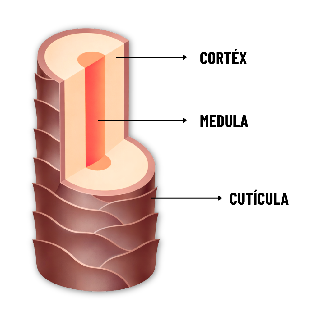 Para entender por que a reconstrução molecular é diferente, precisamos olhar para a anatomia do cabelo.